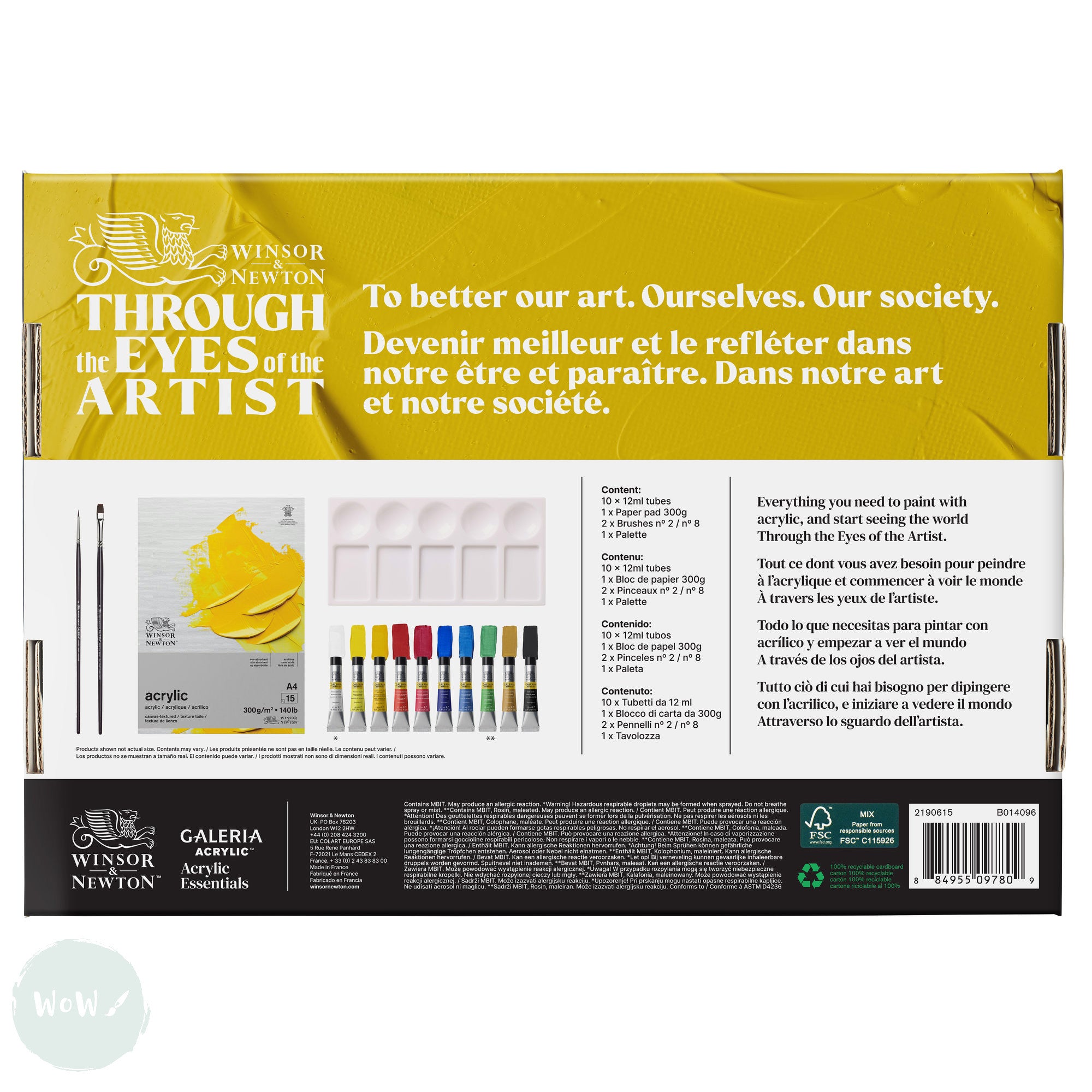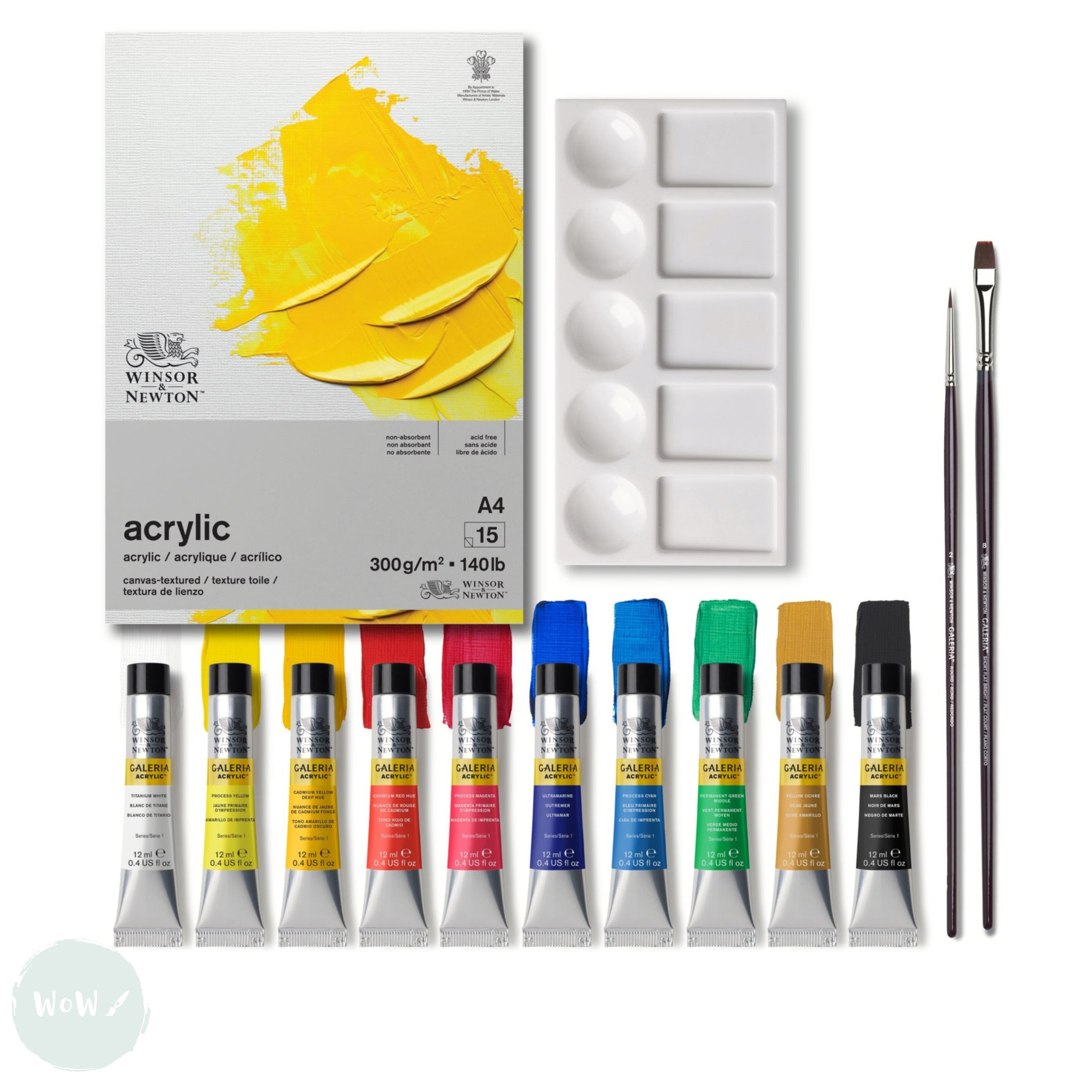 Acrylic Paint Set- Winsor & Newton - GALERIA - Essentials 14pc Set - 10 x 12ml tubes, Palette, Pad, 2 x brushes