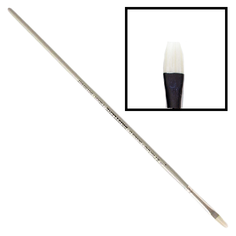 A fully synthetic version of a traditional hog or bristle haired brush, designed for oil or heavy acrylic painting.