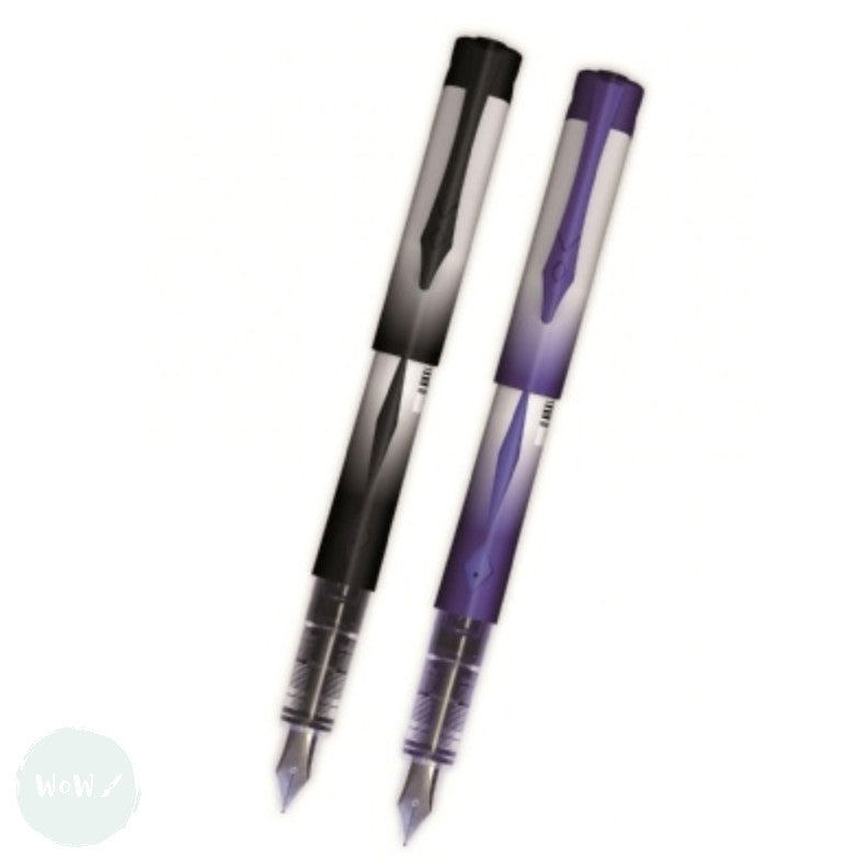 Ready to use Stainless steel tip, Plastic body disposable fountain pen with water based ink.