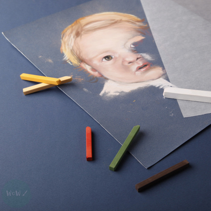 In addition to pastel and pastel pencils, it will support most dry and wet media including: oil pastels, charcoal, coloured pencils, acrylics, watercolours and gouache.