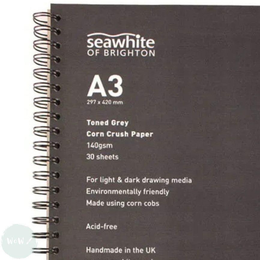 SPIRAL BOUND SKETCHBOOK - Toned Paper - Eco CORN CRUSH Paper - 140gsm - GREY - A3