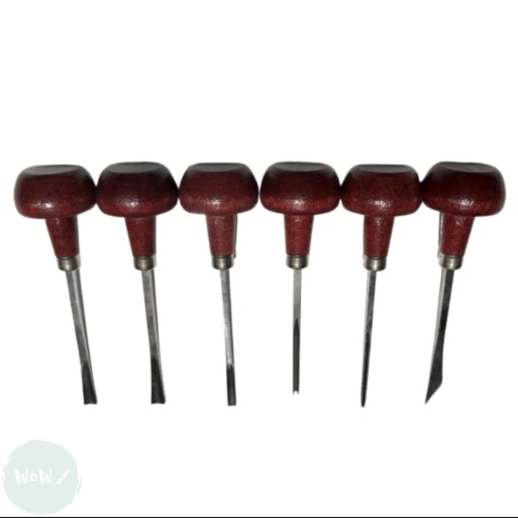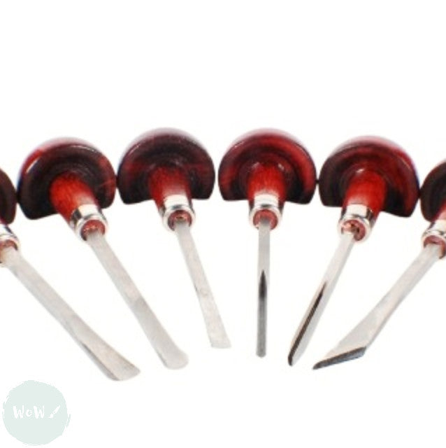 BLOCK / LINO PRINTING - CUTTING TOOL - DELUXE Wooden Mushroom Head Handles - 6 assorted set