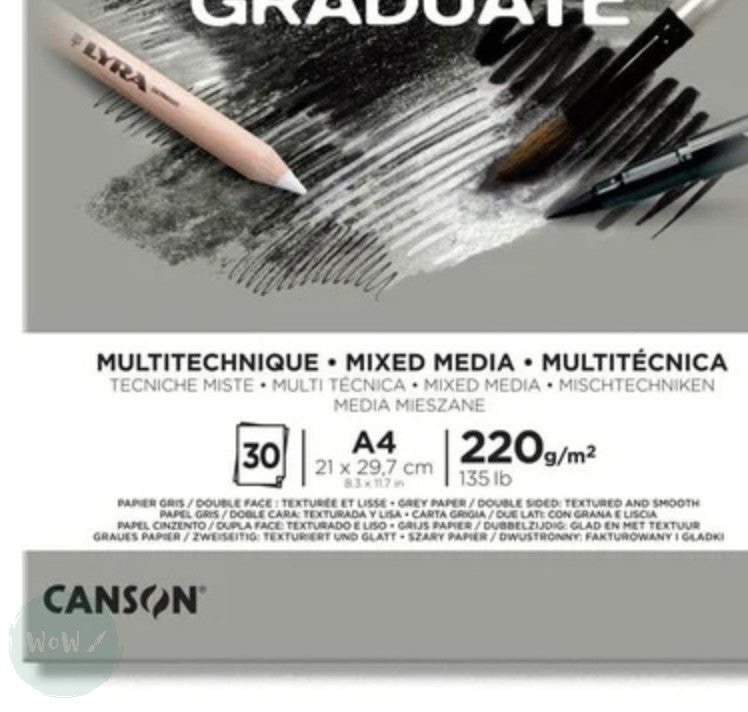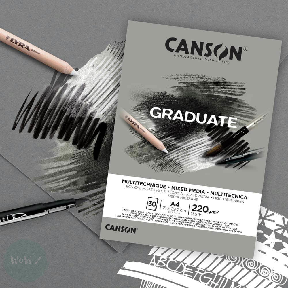 Canson® Graduate Mixed Media pad contains 20 sheets of 220gsm grey durable, double-sided (textured and smooth) paper.