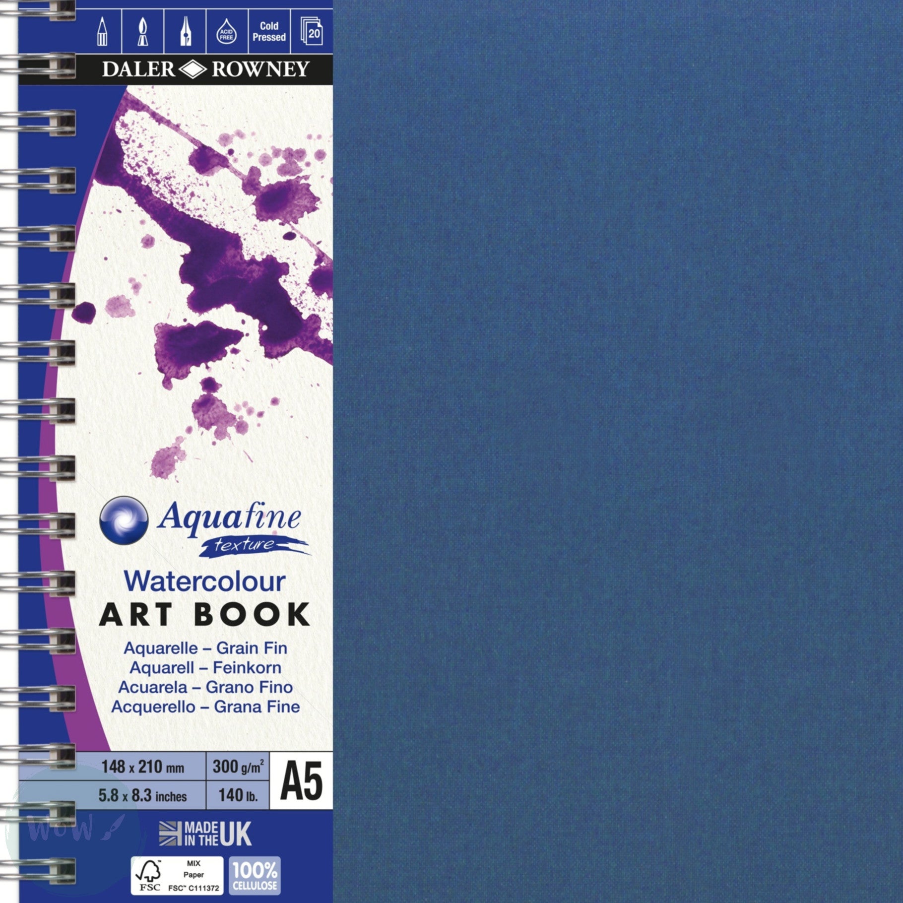 WATERCOLOUR PAPER - Hardback Book - SPIRAL BOUND - Daler Rowney - AQUAFINE Texture - 300gsm - 20 sheets - NOT surface - ROYAL BLUE COVER - A5 PORTRAIT