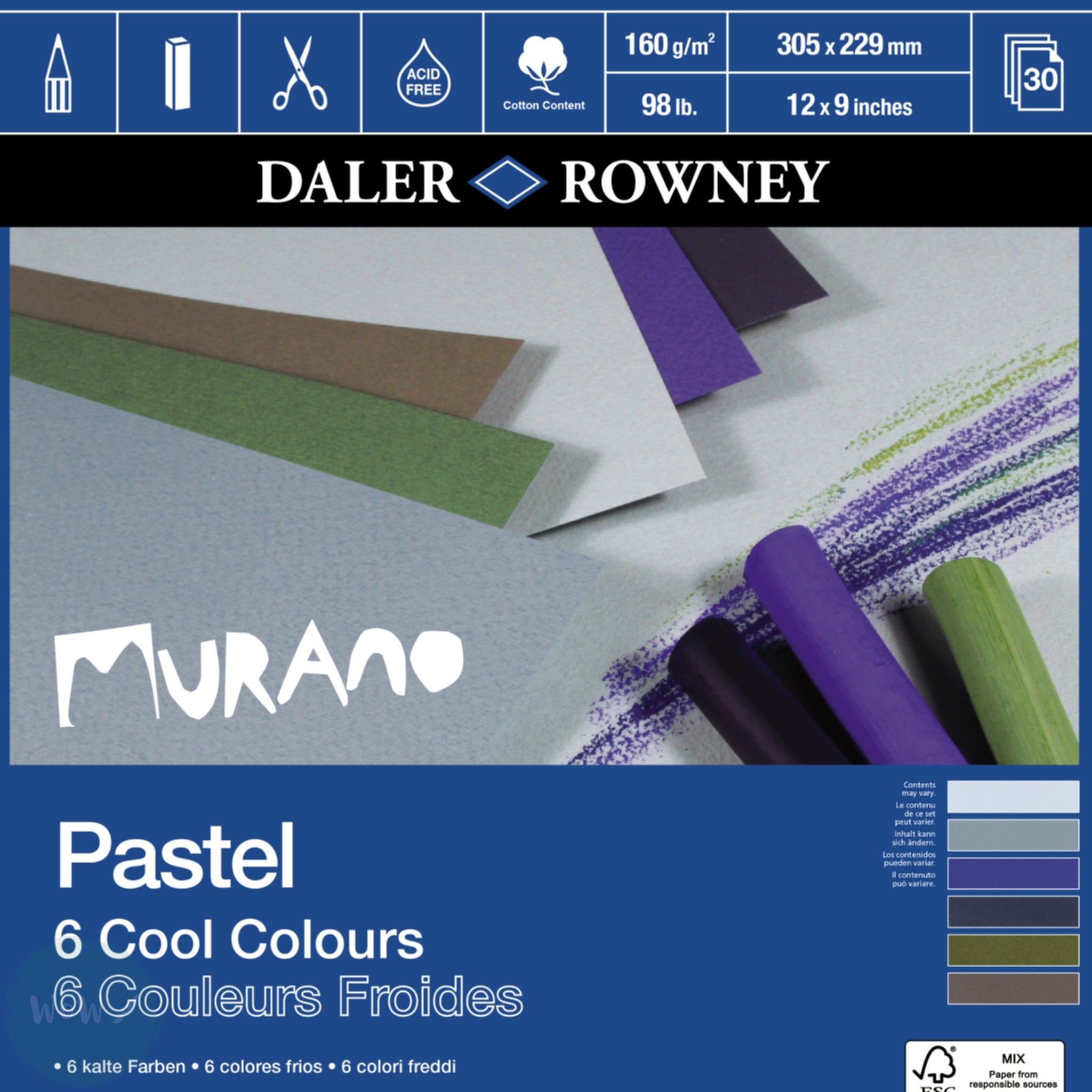 Pastel Paper Pads- Daler Rowney - MURANO Pastel & Art paper- 12 x 9"- Cool Colours