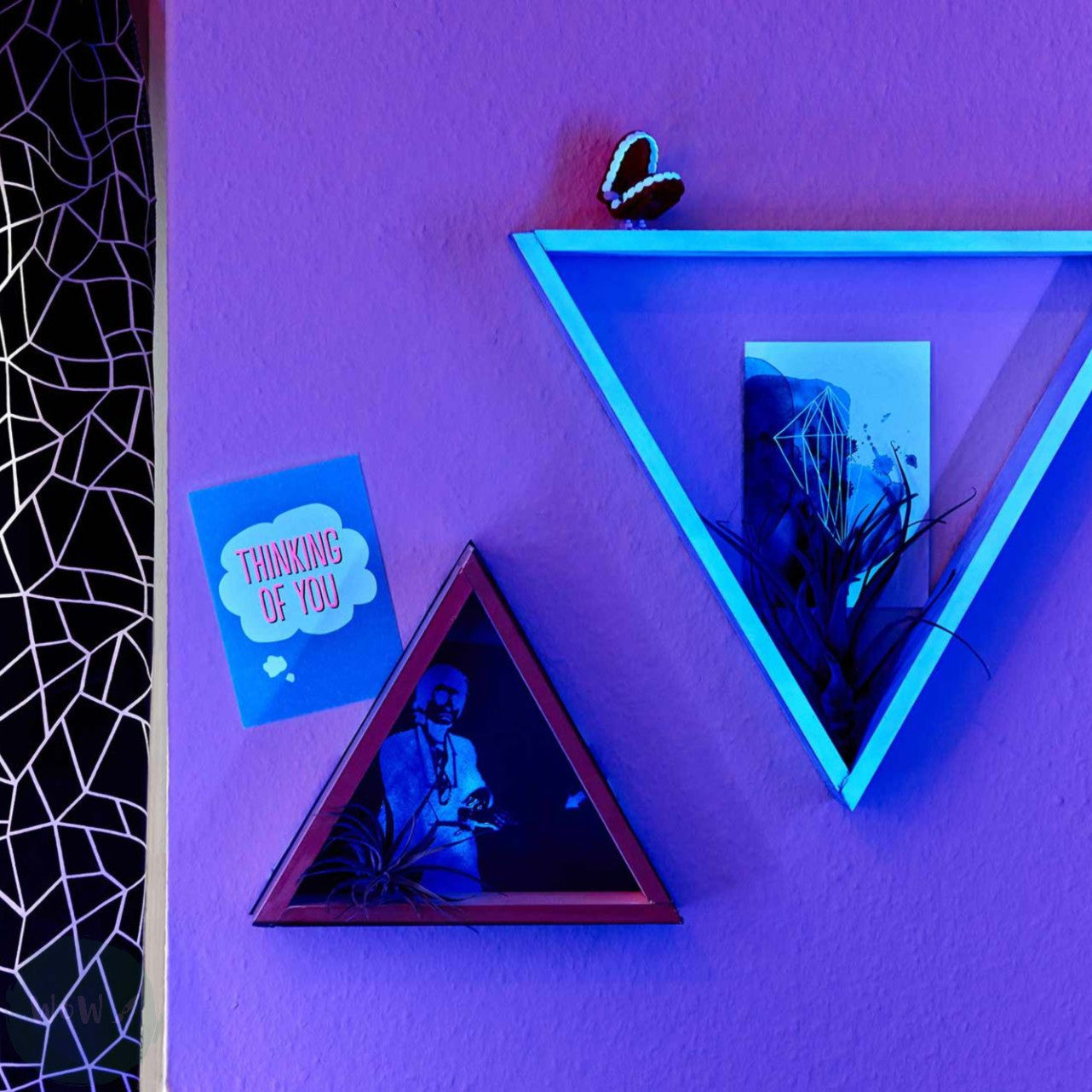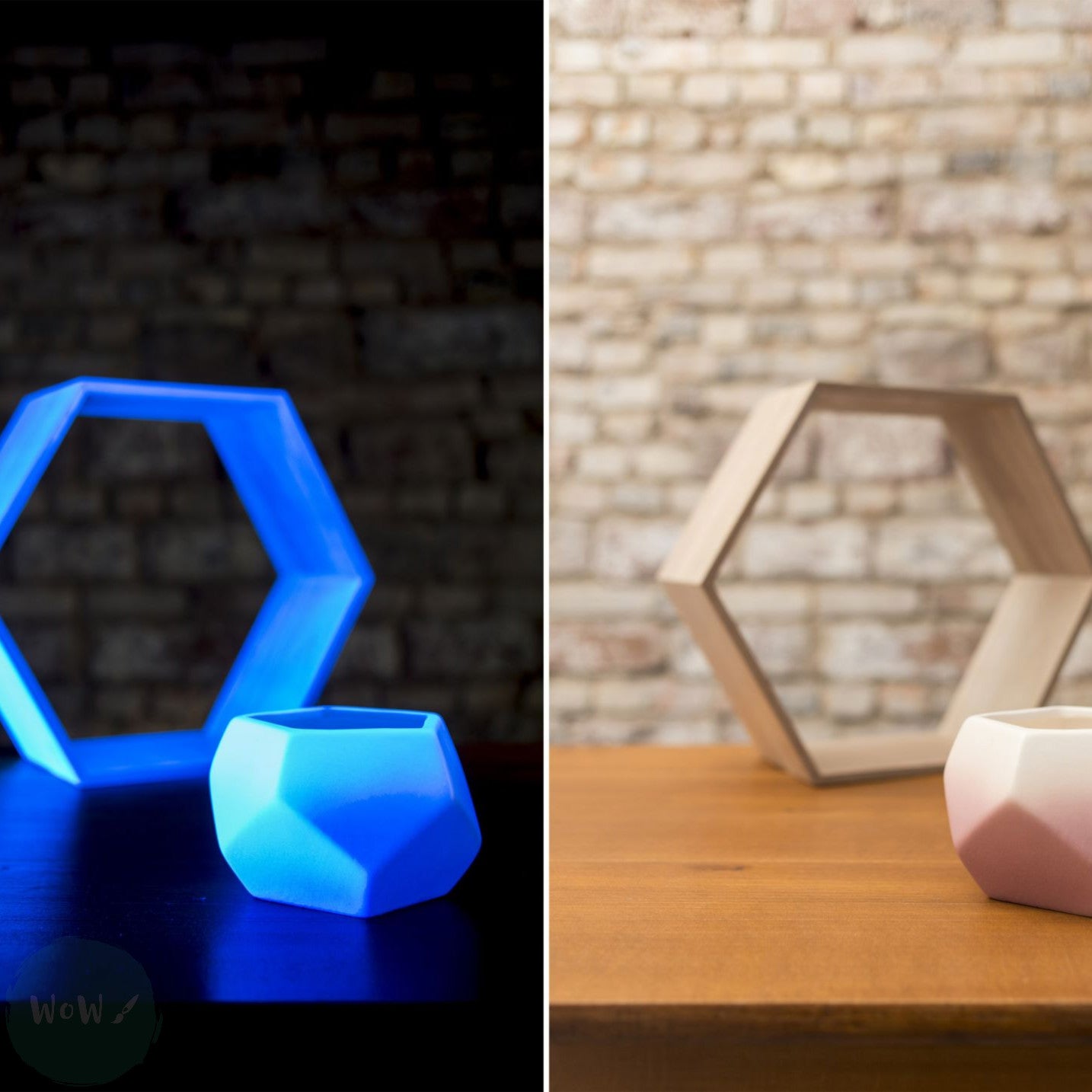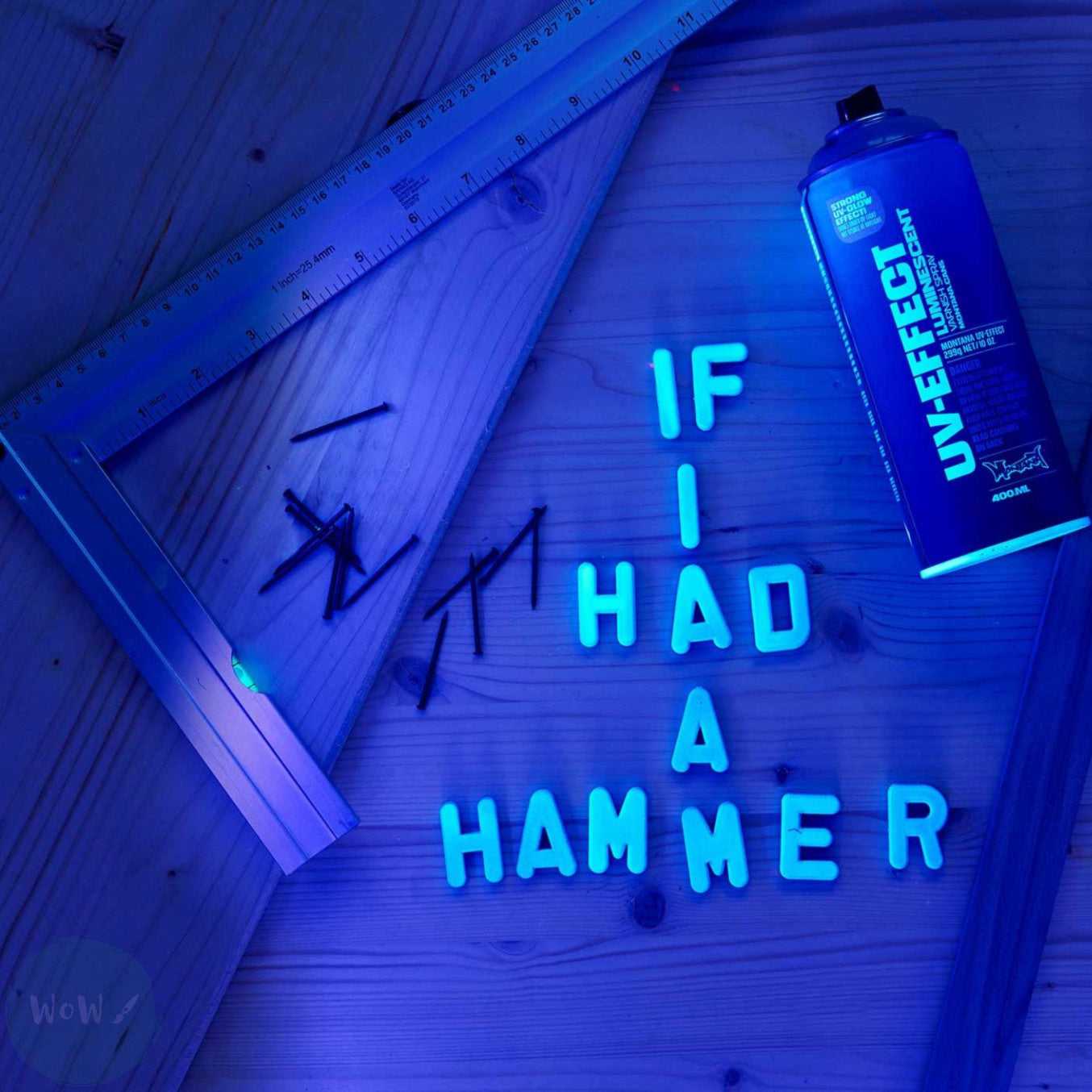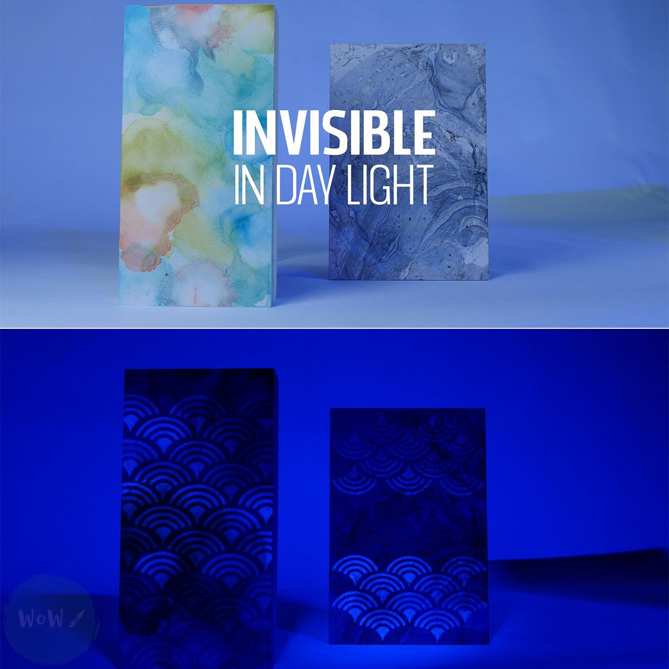 The UV light effect becomes stronger the more coats that are applied, particularly when applied with a stencil.