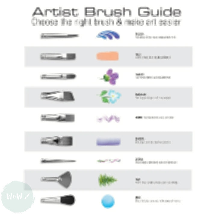 SET CONTAINS - Brights 16, 20, 24, Flats 4, 14, 16, 1.5", Rounds 1, 2, 3, 5, 8, Angular 12, 18, 22, 3/4", 1", Filbert 6, Shader 2, 6, 10, Detail 3/0, 2/0, 0, Fan 10 in a a reusable, plastic Zip N' Close brush pouch for easy storage.