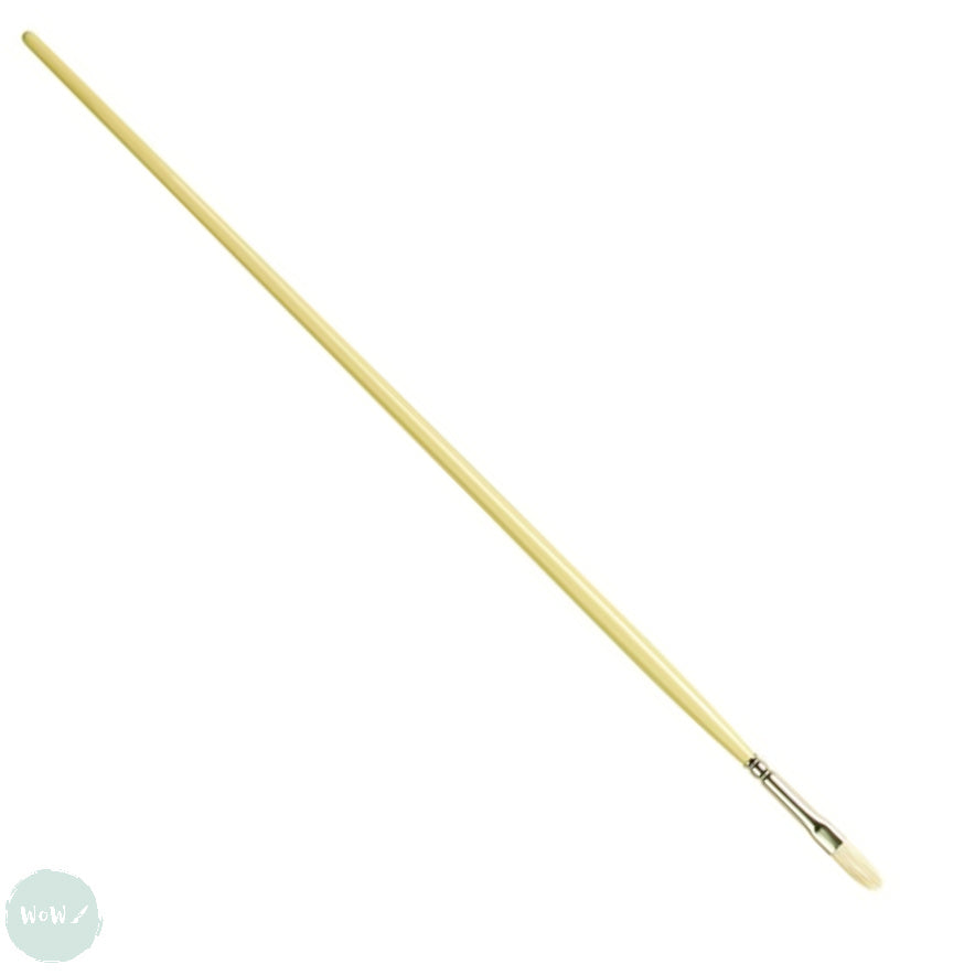 Versatile shaped brush, flat with rounded end ideal for creating a variety of marks with a softer edge.