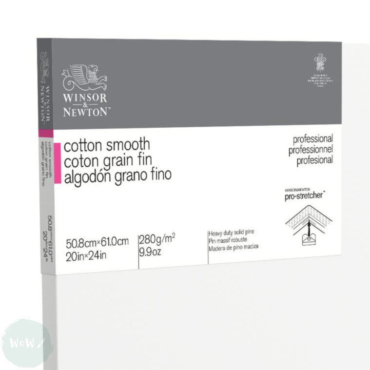 Artists Stretched Canvas - STANDARD Depth - WHITE PRIMED Cotton - SINGLE - 280 gsm Winsor & Newton - PROFESSIONAL SMOOTH (Fine Detail) - 20 x 24" (508 X 610mm)