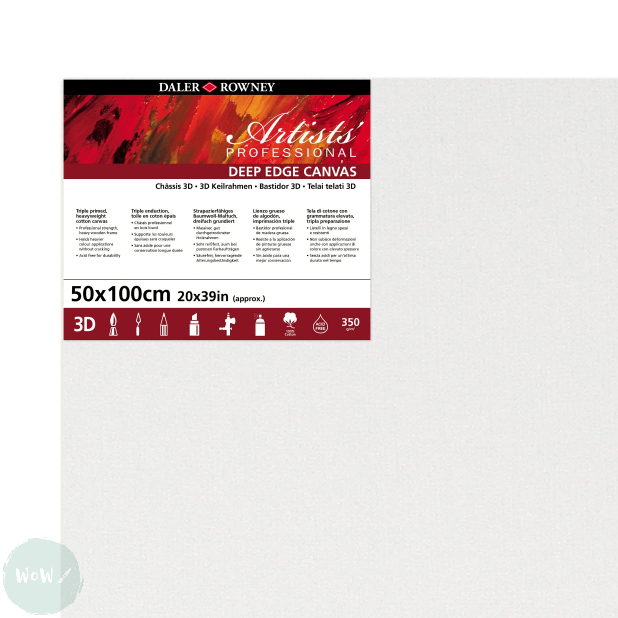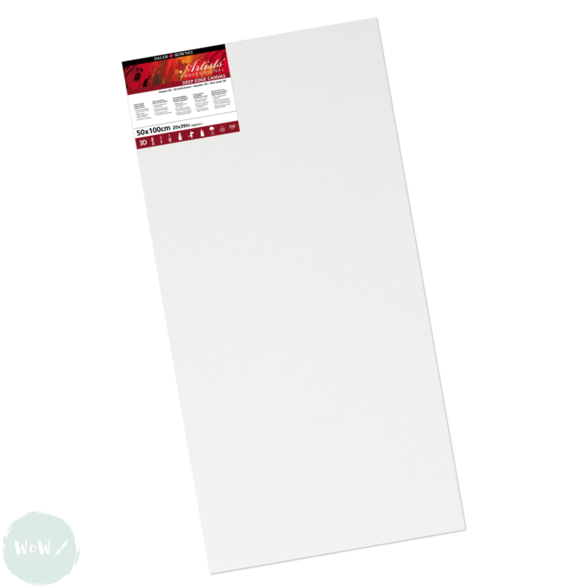 DEEP EDGE White Primed Stretched 100% Cotton Canvas – Daler Rowney - ARTISTS 3D - 50 x 100cm (Approx. 20 x 39”)