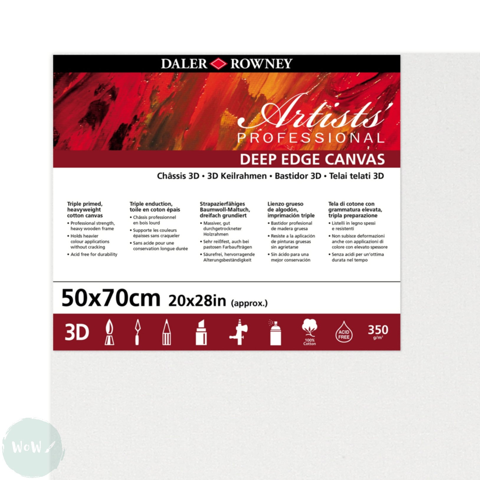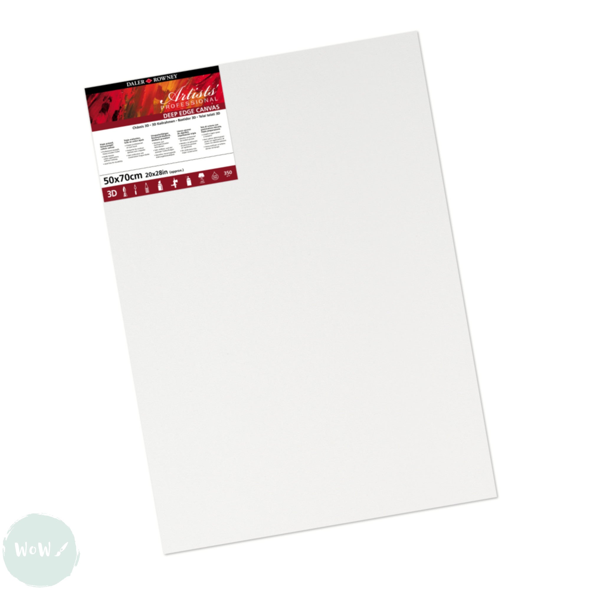 DEEP EDGE White Primed Stretched 100% Cotton Canvas – Daler Rowney - ARTISTS 3D - 50 x 70cm (Approx. 20 x 28”)