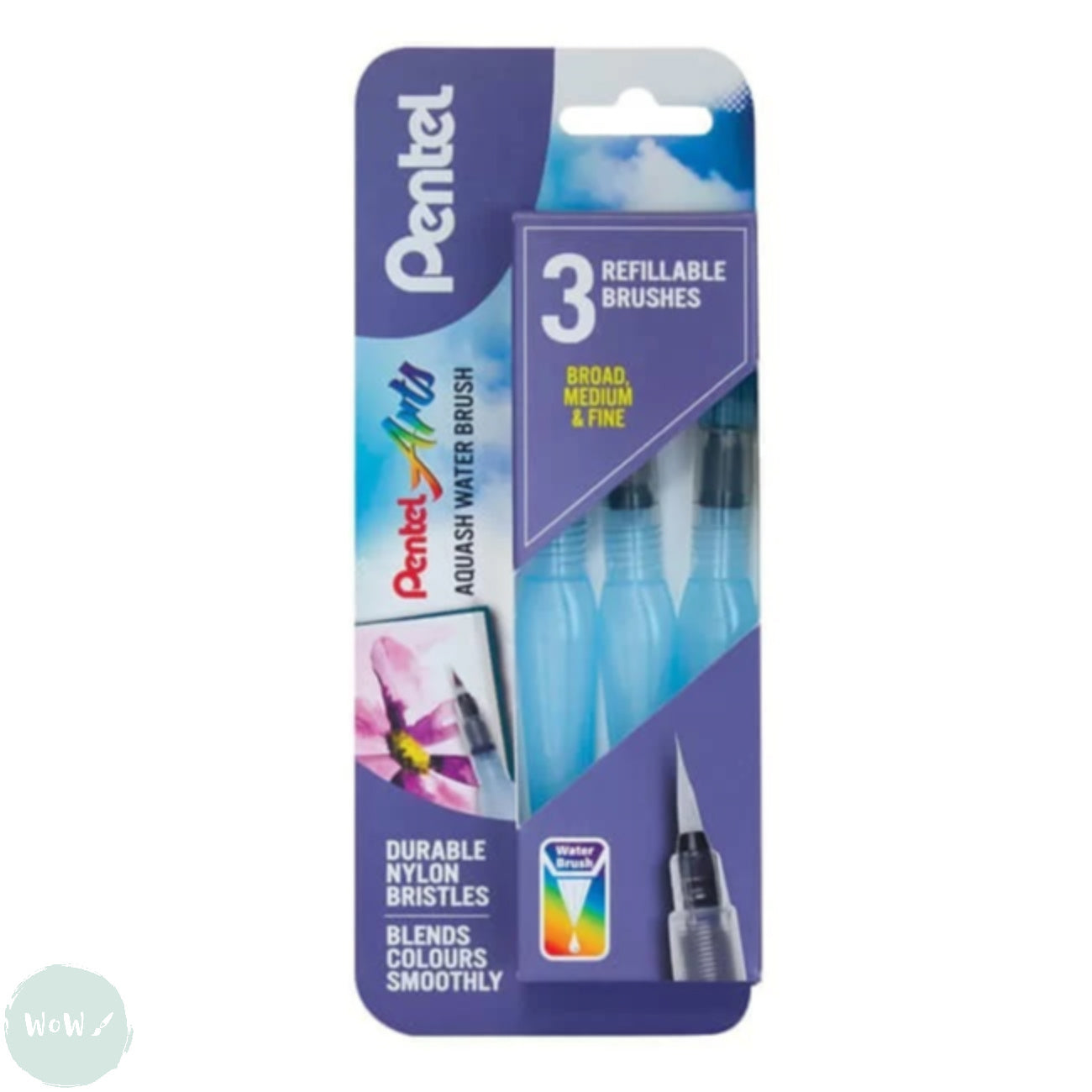 Water Brush Pen - PENTEL Aquash - SET OF 3 - FINE, MEDIUM & BROAD
