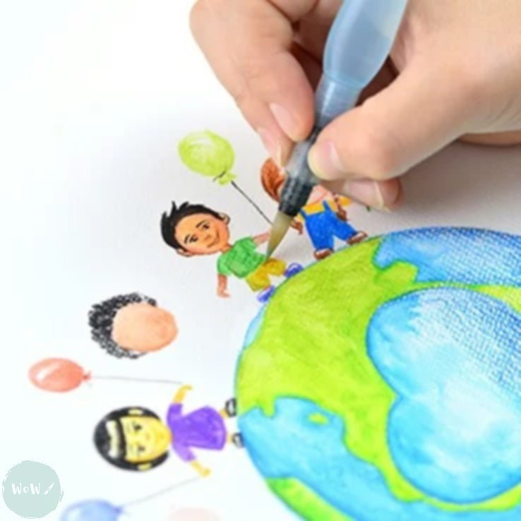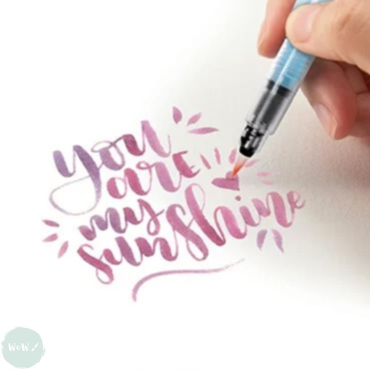 Once filled with water a gentle squeeze lets water flow through the brush tip, refillable water tank with 10ml capacity