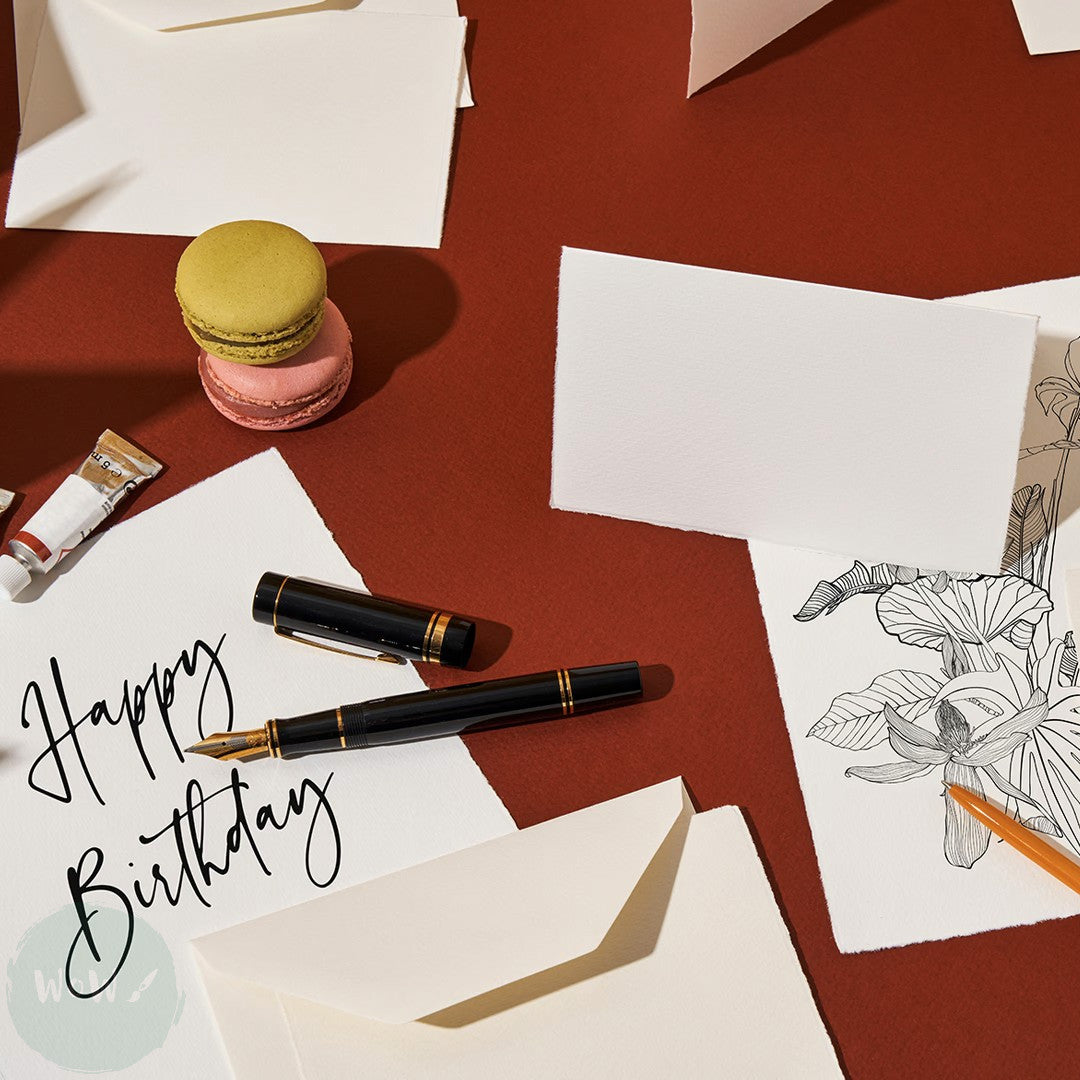 Ten natural off-white Watercolour blank paper greeting cards, pre-scored allowing them to be neatly folded.