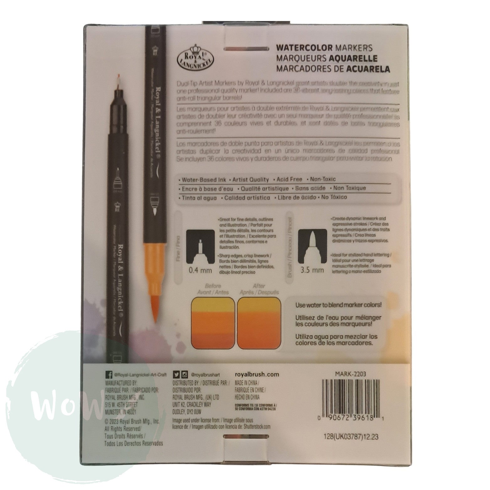 Coloured Pen Set - ROYAL Dual-Tip Artist Markers - Water-based, Brush & 0.4mm - 36 Assorted