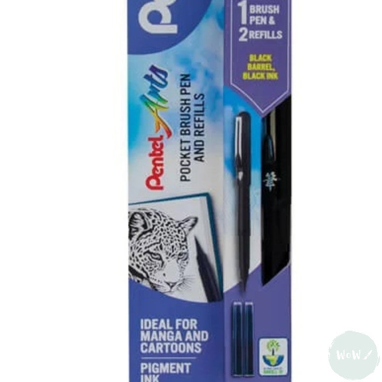 Drawing Pen- PENTEL - Pocket Brush Pen & Refills - BLACK PIGMENT INK - Black Barrel