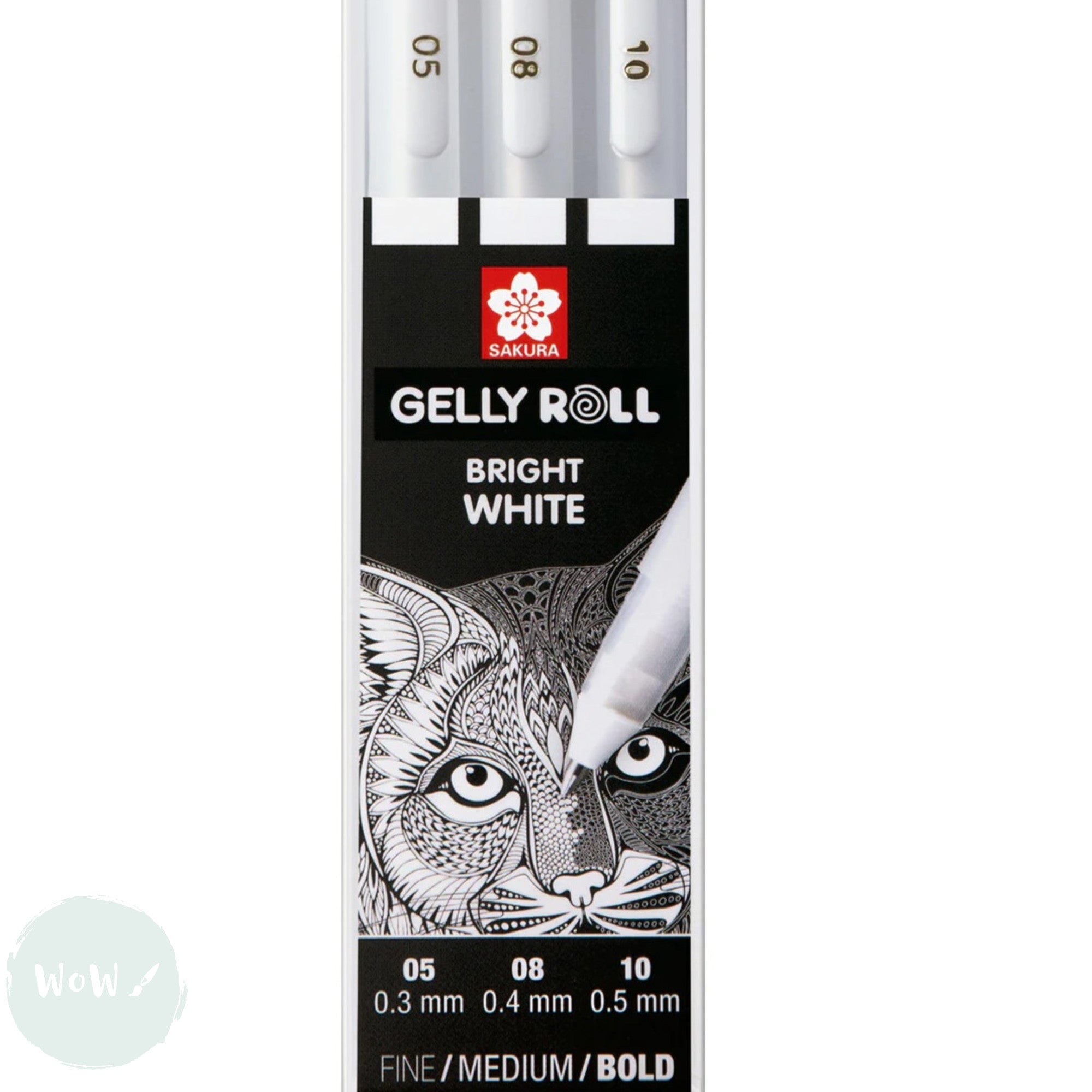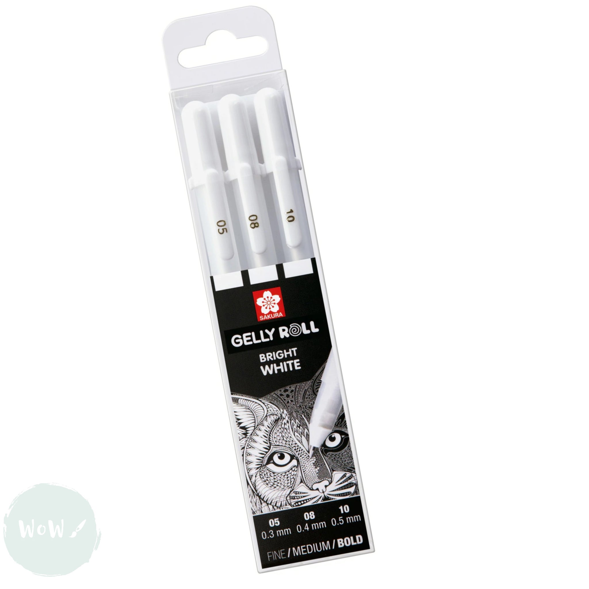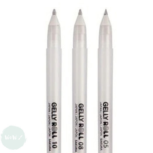 Gel Pen - SAKURA Gelly Roll - pack of 3 - WHITES - FINE, MEDIUM & BOLD
