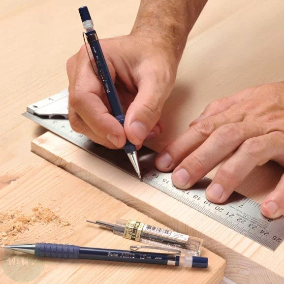 Supplied with 12 Super Hi-Polymer HB leads and replaceable eraser.